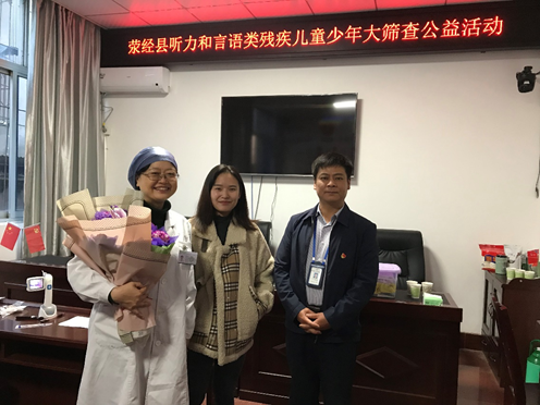 筛查义诊服务小分队严谨的作风、高尚的医德、高超的专业技术,迎得了所到之处听力语言残疾人及其亲属的广泛赞誉和信任,“感谢!”之声不绝于耳,主动为小分队送茶送水的残疾人数不胜数,个别原本对筛查活动缺乏信心而没打算带亲人就诊的残疾人亲属,来到现场看后,都纷纷打电话或搭出租车,主动接自己亲人来就诊,特别在荥经县,还出现了暖心的一幕,该县青龙镇听力二级残疾人李爽专程搭车来到筛查义诊点,为筛查义诊小分队送来了鲜花,感谢小分队的辛勤付出,让现场的残疾人工作者倍感欣慰。